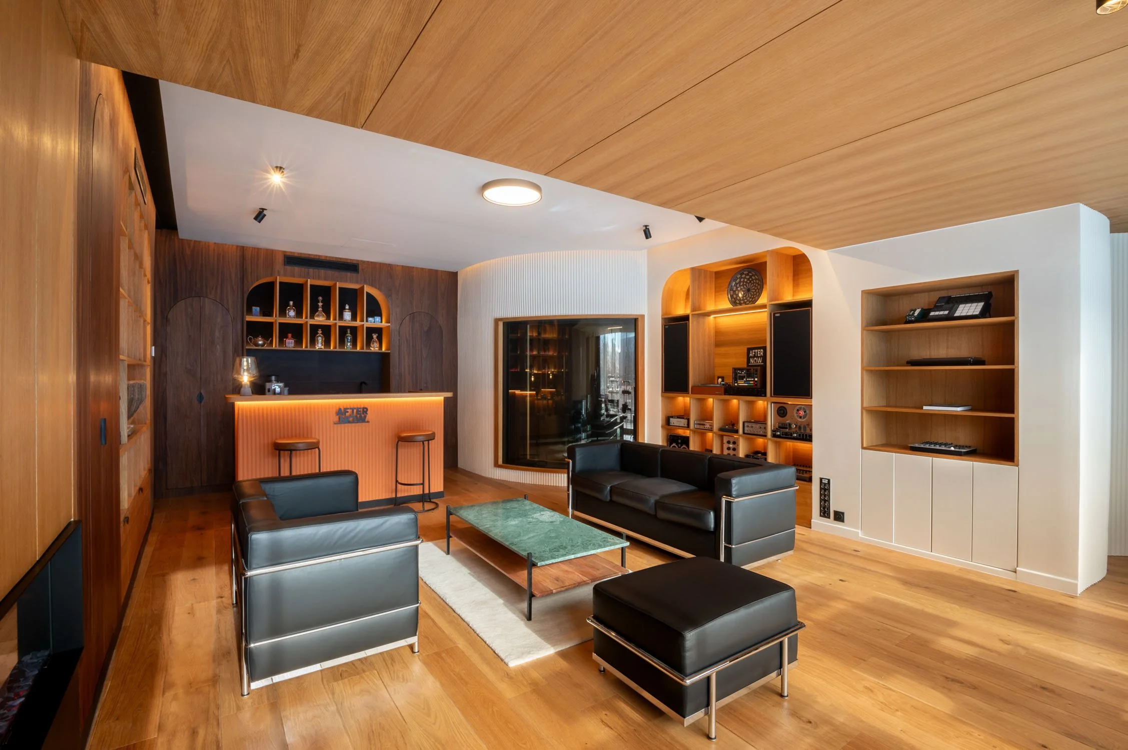 Au total, quatre espaces interconnectés : un grand studio stéréo, une "live room" polyvalente, un studio Dolby Atmos et un auditorium transformable en salle de projection ou de conférence. L’ensemble pensé pour dialoguer et être mobile.