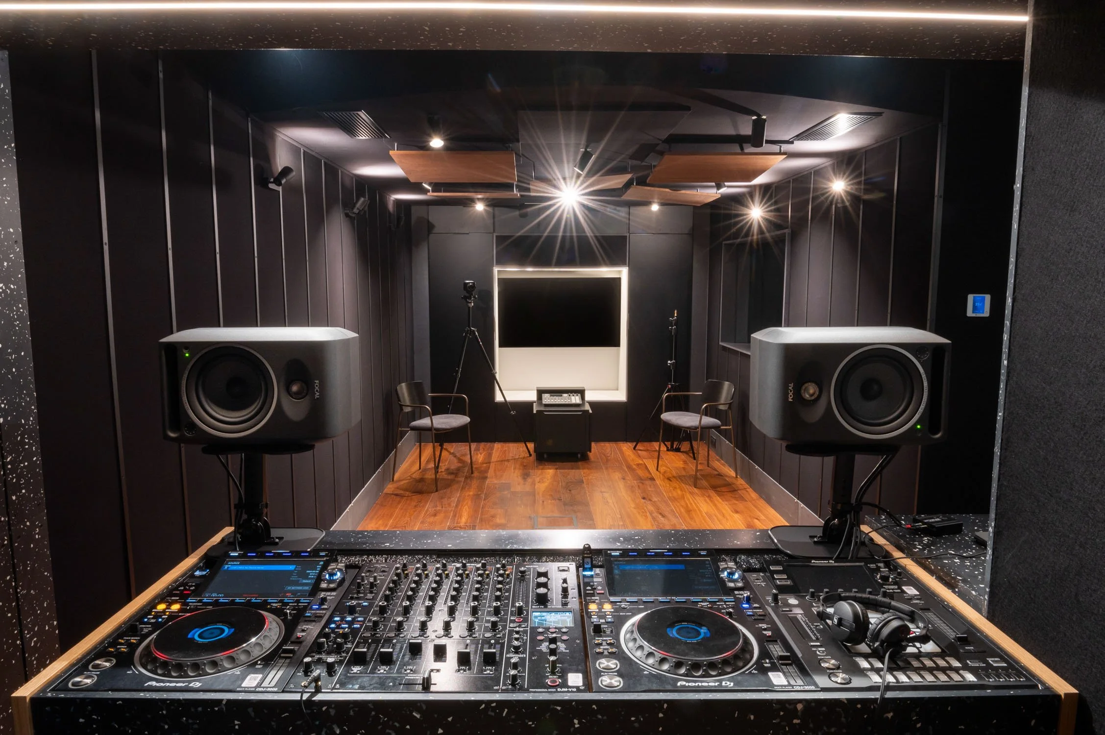Un lieu qui produit du son, certes, mais qui aussi, le sculpte. Le son du grand studio est dense, net. Les murs absorbent, la moquette vibre. On comprend rapidement que tout ici est pensé pour ça : écouter et ressentir.